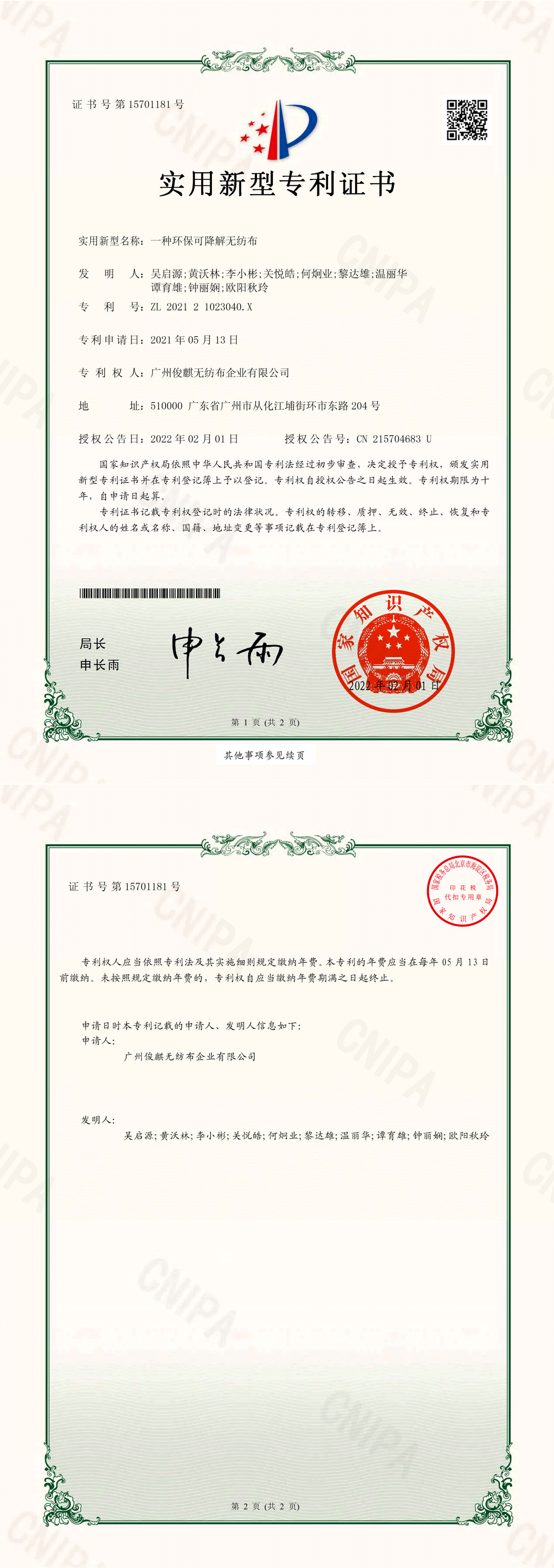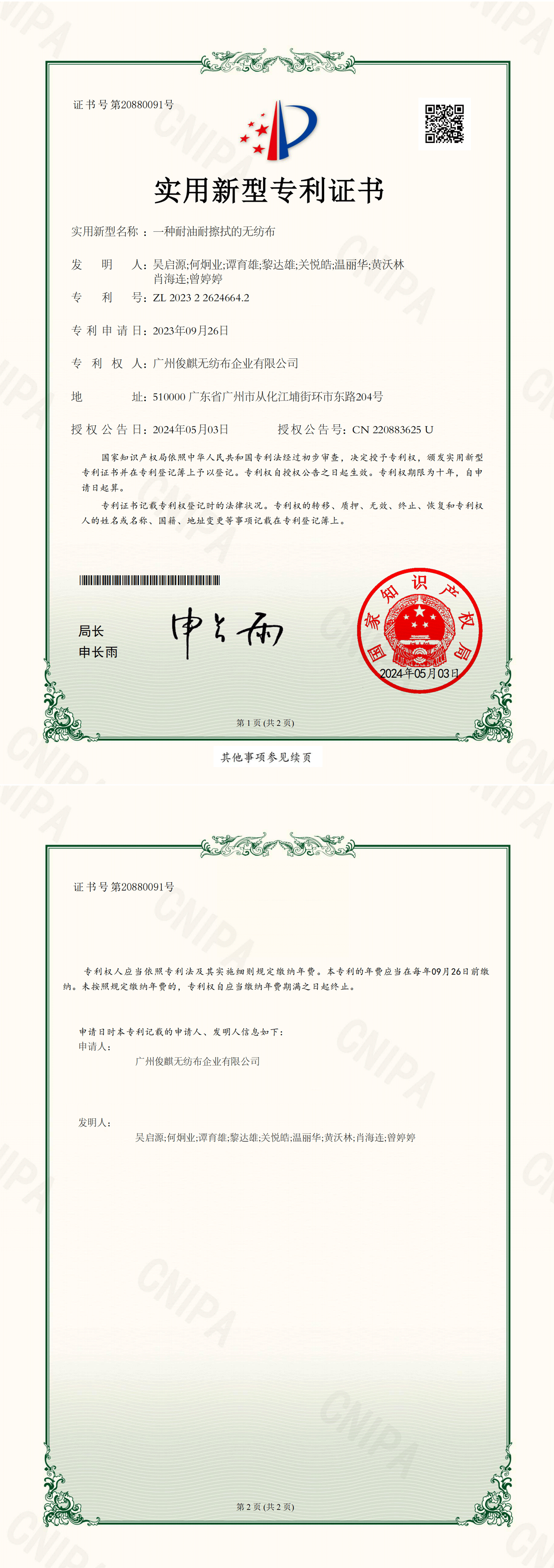 广州俊麒无纺布企业有限公司,江门市俊鸿银鹰企业有限公司,江门市鸿祥纸业有限公司,